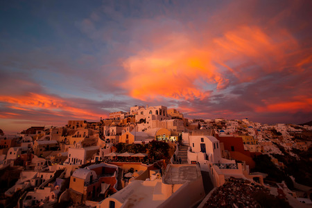 イア サントリーニ島 ライトアップ ヨーロッパの写真素材